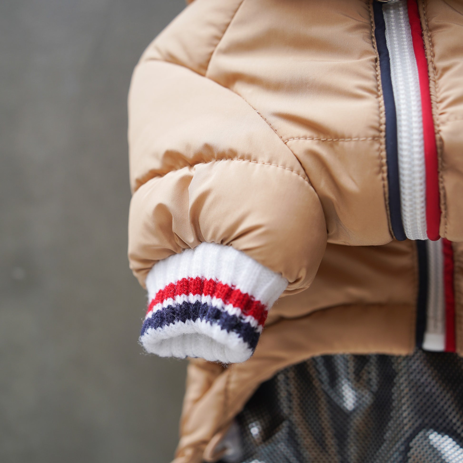 今期一番人気。トリコロールの袖口と上品なイメージのダウンです。